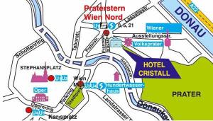 Στην καρδιά της Βιένης, πολύ κοντά με τα πόδια από το ιστορικό κέντρο της Βιένης και κοντά στο συνεδριακό κέντρο, το Hotel Cristall απολαμβάνει μία εξαιρετική κεντρική τοποθεσία. Προσφέρει ακόμα εύκολη πρόσβαση στο σιδηροδρομικό σταθμό Praterstern.