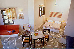 Τα διαμερίσματα του συγκροτήματος είναι ιδιαίτερα ευρύχωρα καθώς το καθένα από αυτά είναι από 40 έως και 45 τ.μ. Είναι διακοσμημένα και επιπλωμένα σύμφωνα με το παραδοσιακό κυκλαδίτικο στυλ και αποτελούνται από ένα καθιστικό, ένα υπνοδωμάτιο και μπάνιο.