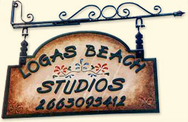 Το "Logas Beach Studios" είναι ένα καινούριο κτίριο που έχει σεβαστεί την παραδοσιακή κερκυραϊκή αρχιτεκτονική. Διατηρεί στις προσόψεις καμάρες και ξύλινες πόρτες και παράθυρα βαμμένα