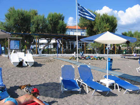 •Ομπρέλες και καρέκλες στην παραλία, θαλάσσιο ποδήλατο, κανό και Βόλεϊ