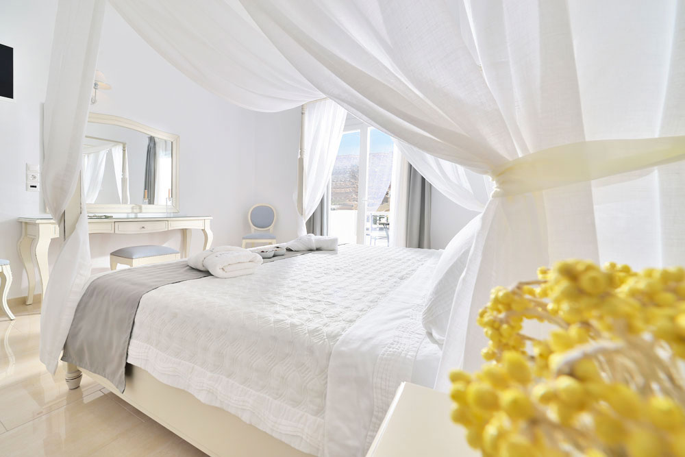 Αποτελείται από μονόκλινα δωμάτια, δίκλινα, τρίκλινα, στούντιο και Σουίτες με όλες τις ανέσεις. Προσφάτως προστέθηκε μια καινούρια πτέρυγα στο ξενοδοχείο ικανοποιώντας τους μέχρι τώρα υπεράριθμους πελάτες μας. Όλα τα δωμάτια είναι εξοπλισμένα με μπάνιο, δορυφορική τηλεόραση, μίνι μπαρ, τηλέφωνο, και μπαλκόνι ή βεράντα με τραπεζάκια και εξαιρετική θέα.