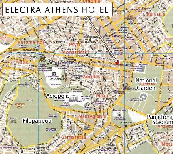 Το ξενοδοχείο Ηλέκτρα βρίσκεται στην καρδιά της Αθήνας, απέναντι ακριβώς από την Πλατεία Συντάγματος και το κτίριο του Κοινοβουλίου, στις αρχές του πεζοδρόμου της Ερμού. Η προνομιακή του τοποθεσία μέσα στο εμπορικό αλλά και επιχειρηματικό κέντρο της πόλης το καθιστούν ιδανικό.