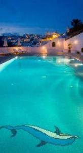 Το Ξενοδοχείο βρίσκεται μόλις 10 λεπτά απο το κέντρο των Φηρών, στην κορυφή ενός λόφου και έχει εκπληκτική θέα προς το Αιγαίο και το ηφαίστειο.