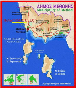 Το Ξενοδοχείο «Castello» είναι κτισμένο εντός του οικισμού Μεθώνης του νομού Μεσσηνίας. Αποτελείται από 13 ευρύχωρα δωμάτια τα οποία διαθέτουν κλιματισμό, ψυγείο και έχουν μπαλκόνια με θέα το κάστρο και τον οικισμό.