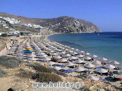 Είναι μια από τις ωραιότερες παραλίες της Μυκόνου. Χαρακτηρίζεται από την ατέλειωτη αμμουδιά και τα καταγάλανα καθάρια νερά. Εδώ, θα συναντήσετε πολλούς από τους επώνυμους παραθεριστές του νησιού. Στην περιοχή αυτή βρίσκεται και η περίφημη Watermania, ο παράδεισος της νεροτσουλήθρας όπου θα περάσετε αξέχαστες ώρες.