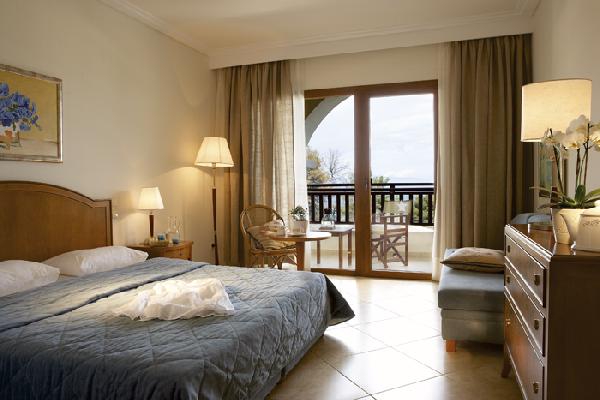 Η διακόσμηση των δωματίων είναι κομψή και λειτουργική, με φυσικά χρώματα και υλικά. Δίκλινα δωμάτια υπάρχουν στο κεντρικό κτίριο και στην περιοχή των bungalows. Όλα διαθέτουν μπαλκόνι ή βεράντα με επίπλωση.