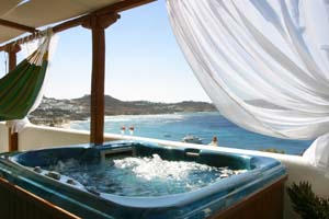 The deluxe rooms feature a spacious bedroom with sitting area, a private Jacuzzi with aromatherapy on your terrace, DVD, CD player. A marble lined bathroom.