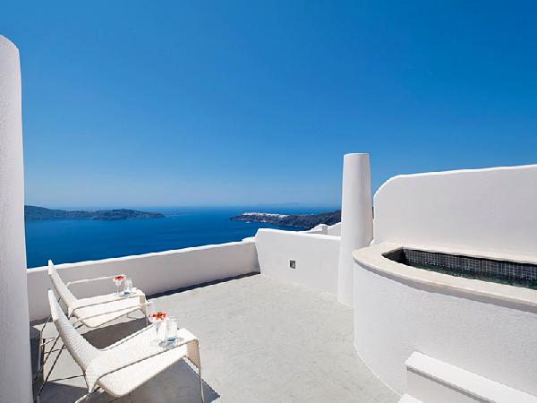 Galaxy Apartments is situated on the sunlit island of Santorini, one of the most popular resorts of Greece, in the picturesque and traditional village of Imerovigli. Here you can relax in true luxury. The suites have a private or common veranda and indoor or outdoor jacuzzi. Alternatively, you can keep fit and cool in our outdoor swimming pool. The capital city, Fira, is 1. 8 km from us. You can get there on foot, by a 30-minute walk on the main road or by the track along the rim of the cliff, enjoying the view all the way. The city is also accessible by bus, taxi or car.