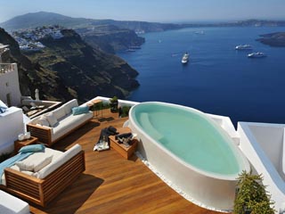 Located at the highest point of the island of Santorini, the historical rim of Caldera, this small complex provides astounding sun set views of the volcano.