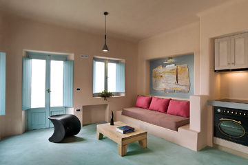 Keeping with tradition and conservation of the village, Voreina Gallery Suites maintains the bold architectural lines that have come to form the quintessential Cycladic landscape.