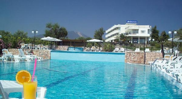 Guests can relax at the sun loungers by the pool and enjoy a refreshing drink from the poolside bar, while younger guests can spend their time at the on-site playground or at the children pool. Greek flavours can be enjoyed at the restaurant for lunch or dinner.
