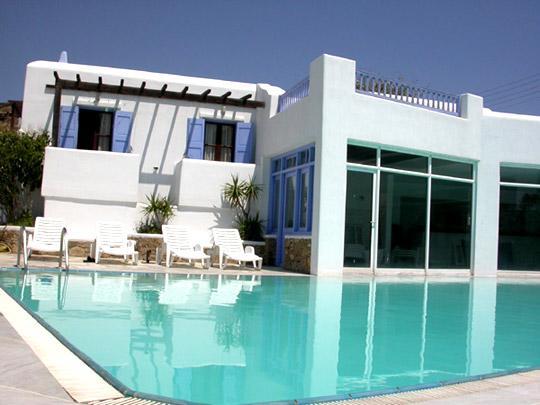 It is built in a quiet area and designed in the traditional Mykonian architecture with a view of the famous Aegean Sea and the town of Mykonos.