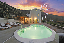 The swimming pool in a shape of bean offers an ideal hydro- massage for 4 persons and is located near a pergola in the shadow of which you may enjoy your breakfast and your meals. The garden with the biological season- products can offer you a Mediterranean healthy meal. The absolute quietness and the privacy of the facilities as well as the minimal architecture of the windmill shall offer you an unforgettable hospitality and shall be considered as the starting point for your excursions. We are always available to provide you information about our island. Images and wonderful scents shall accompany you forever and the views of our island shall make you want to stay there forever.