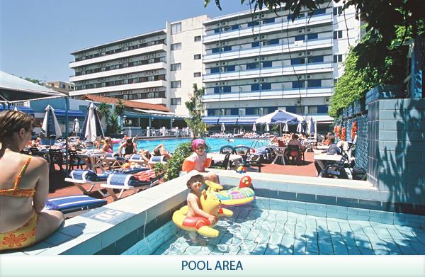 Well kept, high standard holiday hotel with generous swimming pool, separate children's pool, sun terrace with sun beds and umbrellas (free of charge) and Pool/snack bar with a sitting satellite Tv-room, Tavern, Restaurant, bar and three (3) lifts.