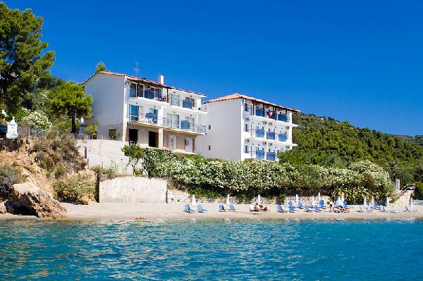 Our friendly establishment near to Skiathos town and right by (zero distance) the beautiful beach of Megalia Ammos.