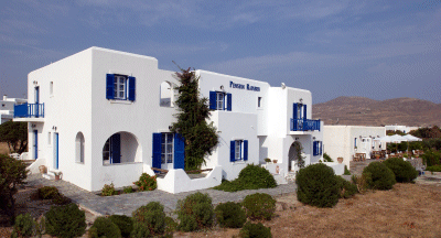 Right here at Paros , we have created our own hospitable setting, built with the cycladic style, “PENSION RAPABEN” and its magnificent surrounding garden. It is located between the picturesque town of Naousa and the magical beach of Kolimbithres and is comprised of 10 furnished rooms with private bathrooms, refrigerator, verandas or balcony overlooking the gulf of Naousa.