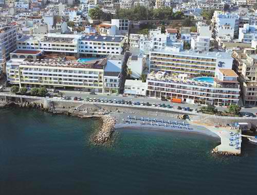 Hotel Coral has a magnificent sea view of the Mirabello gulf. All rooms are equipped with private bath, direct-dial telephone, radio, refrigerator, satellite TV, A/C and private balcony.