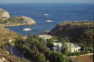 Anthony Quinn obtained permission to build a retirement home for actors on this pretty little bay on the road to Lindos, 3km (2 miles) south of the swinging beach resort of Faliraki; he never realized his plans, but the bay retains his name. We especially enjoyed the quiet and the convenient location of this friendly family-operated lodge, with nature-lover activities such as swimming, fishing, and hiking to nearby ruins and less-frequented beaches, and its proximity (a 20-min. walk) to noisy and bustling Faliraki. The new (in 2000) outside terrace bar and dining area with a splendid view of the Ladiko Bay provides a lovely tranquil spot for a drink or a meal. The guest rooms are not exceptional, but are quite comfortable and have new mattresses. Fourteen rooms come with fridges.