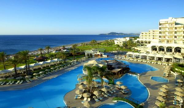 This premier class resort occupies a prominent position on the Blue Flag-awarded beach of Kallithea, just 8 km from Rhodes and 15 km from the International Airport of Diagoras.