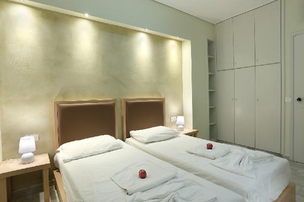 Elmas Dream Apartments is built just 100 meters up the beach of Chrissi Akti. Next is the area of Makris Tihos, just 3km west of the city of Hania. A small quiet paradise for relaxation and amusement but not apart from the all the fun. Elmas Dream is built only a few minutes away from the center of the city but away from main streets and only100 meters from the beach. Do you need more to make your holidays really enjoyable? Dont worry about the noise, traffic or how to get to town for your shopping or your evening recreation. Transportation is easy and frequent. Bus station is just around the corner and it takes only a10 minute trip. If you prefer, a taxi is also a cheap and easy way to do it. Elmas Dream Apartments has 15 Furnished spacious and comfortable apartments and studios. All having equipped kitchenette with refrigerator and a mini oven, coffee machine. The apartments have a bedroom, a sitting room and a private bathroom and it is possible to be up to 4 people in each apartment. The studios have bedroom and sitting room in one. They all have a balcony and some of them share a big terrace as well. All the apartments have music, private telephone, private safe box, air-conditioning or heating and hot water 24 hours a day. They are build around the pool area who has a pool and a children pool. Cleaning 6 times a week.