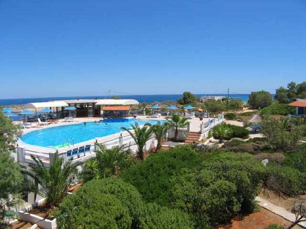The village, away from traffic, is ideal for everybody and families with children, providing total peace and seclusion. The area is close to historical and archaeological places, as well as the Atlantis Water Park. Accommodation: All units are level with the ground, situated by the beach side and designed in traditional Cretan style with verandas covered with ceramic tiles. They are equipped with a kitchenette, cooker and refrigerator, shower/WC, hot water, telephone and have a private balcony with sea view.