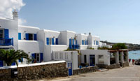 A few kilometers from Mykonos Town, in Platis Yialos is located Petinos Hotel. It is a small, intimate hotel with easy access to the sea and the most tourist shops of the region. Architecturally it follows the tradition of Cyclades islands with white-washed walls, blue shutters and gardens all around it.