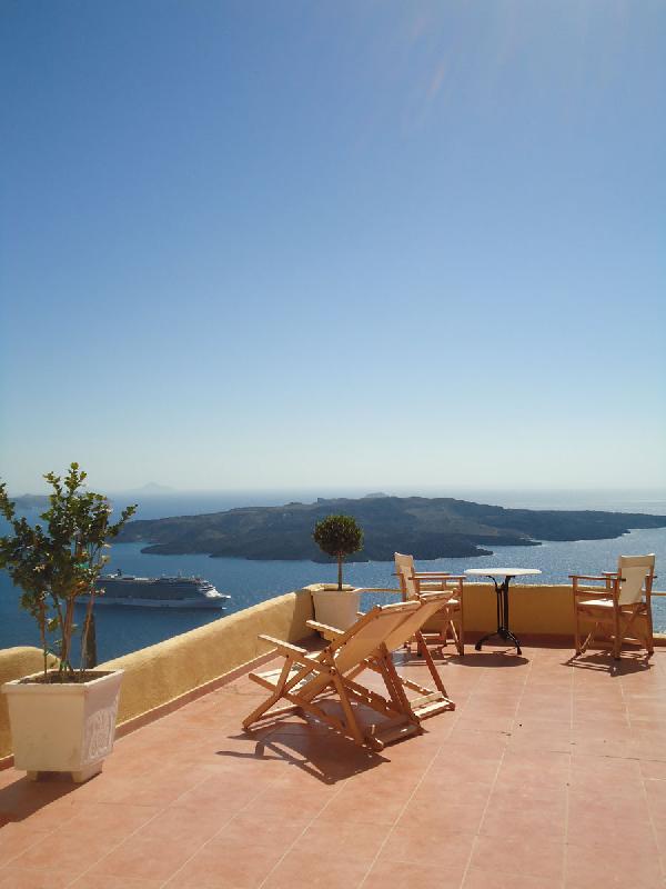 he friendly atmosphere of the hotel Porto Carra, the panoramic view of the volcano and the surrounding islands. Our complex consists of 10 double and 3 triple rooms with verandas overlooking Aegean Sea and sunset. It is located only 50m from the center of Fira, the capital of Santorini a short walk from the shopping area, restaurants, cafes and bars. All rooms equipped with bathroom, TV & air-condition. Fax facilities at your disposal from the hotel’s front desk. Transfer, Rent a Car Services, upon Request.