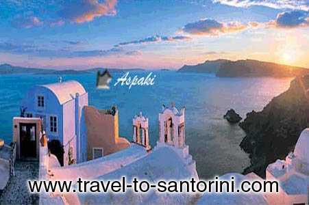 The suites provide a captivating view of one of the most famous sunsets in the world, sinking behind the traditional village promising a spectacular show of color flowing from nature¢spaint brush. Due to its unique location on the cape of the Caldera, Aspaki offers a panoramic view of the entire village yet ensures privacy and provides easy access. Spectator to the aquae¢s road of the Aegean to the South, between the lighthouse of Acrotiri and the edge of Thirasia¢s cape, Aspaki creates an almost surreal haven for the tired traveler, dreamer and lovers whose dreams linger in the Aegean breeze.
