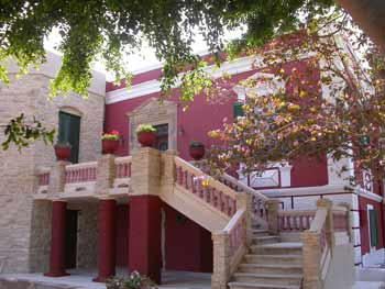 Before its conversion into a hotel in the 1970's, the Angelou Mansion was the summer house of the family who vacationed on Leros island. Now a listed building, the traditional two-storied house, was built in 1895 near the beach of Alinda. Hidden in a spacious estate, it offers open views all around it, and maintains the atmosphere and serenity of times past.