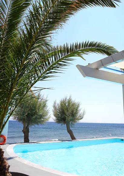 Are situated on the beach of Kamari, 400m. from the center of the village and only 8 km. from the capital of the island, Fira, 3 km. from the airport (Monolithos) and 14 km. from the port (Athinios).