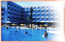 An exceptionally lively hotel with distinctive colour, offering an impressive range of amenities. Its restaurants offer a wide choice of mouth watering dishes ranging from soups, starters, main courses, desserts and ice-creams. An extensive a Ia carte and wine list are available. Bars: Okeanos snack bar, Poseidon pool bar, Pandora cocktail bar offering snacks and main dishes, drinks, wines, etc. Free sunbeds, umbrellas, pool towels etc. Leisure and sports facilities. Childrens games. Daily theme nights for entertainment, weekly live shows. A weekly in-house program including several competitions. 172 rooms including family rooms, furnished with style, equipped with TV satellite, radio, direct dial telephone, hairdryer, safety box, air conditioning, all with pool view or mountain view.