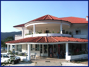 Scala Potamia or “ Chrysi Akti ” where we are located has a small Harbor. Here you find the apotheosis of beauty, with green stretching down to the blue, crystal clear waters and the endless sandy beach creating an oasis for the visitor, who will find whatever his/her heart desires. It is a lovely landscape, with a touch of the supernatural, particularly on moonlit nights, which are spectacular and can be seen from our Hotel. From here one can also climb to the Summit of the Mountain ( 1204 meter’s ), which has a spectacular view. The location of the Hotel is 1,5 Kilometer from the center of Scala Potamia 20 minutes walk from the beach, following a road from the hotel it is 800 meter’s. The Hotel is 20 minutes away from the capital city(Limenas) by car.In a tranquil position between Golden Beach and Scala Potamia, the Achillion makes an ideal base for a quiet holiday, with panoramic views of the surrounding mountains and sea.