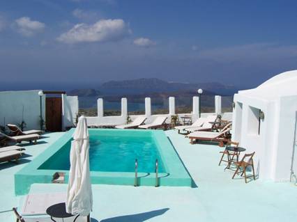 A small hotel development of traditional island cottages located on the Santorinian Caldera, with whitewashed walls and natural wood fittings situated on the sheer 1000 foot volcanic cliff with some of the most breathtaking views in the islands. The hotel - cottages are well appointed with fitted kitchens, lounges and separate bedrooms and private garden. All furnishings are locally hand crafted and the cottages have a homely feeling. The nearby village of Megalohori with its shops and taverns is just a short walk along the main road.