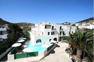 Just 8 Kilometers from Ermoupoli, in the west side of the island and in a distance of only 200 meters from the sandy beach, is our hotel.