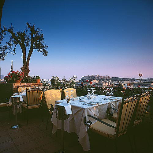 Welcome to Titania Hotel, an urban oasis nestled in the historic and commercial center of Athens between Syntagma and Omonia, the city's major squares. With its legendary hospitality, the completely renovated Titania Hotel features 385 contemporary guestrooms and suites; a majestic lobby with an exquisite white marble floor inlaid with mosaics; state-of-the-art conference facilities; the award-winning rooftop Olive Garden Restaurant replete with olive grove, a stunning panorama of the city, a breathtaking view of the Acropolis, and live piano; the popular Cafe-Brasserie on Panepistimiou Street; an impressive arcade of boutiques; facilities for the handicapped, and underground parking as well as countless other amenities and facilities that make this Athenian institution the first choice among discerning business and leisure travelers.