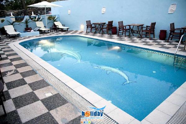 Traditionally Cycladic, with a small courtyard, garden statuettes, pockets of flowers, stone chequered paths & curved archways, this Santorini hotel is quite charming. Modest hotel rates coupled with easy access to Fira town center make Villa Alizea an obvious choice for economical & yet comfortable holidays on Santorini Island.