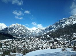 Surrounding the town, the alpine landscape opens into vast spaces. In winter, snow covers the slopes, transforming the area into a network of ski routes and high-altitude activity. In warmer months, the terrain shifts to green meadows, forest paths, and mountain passes, inviting exploration and slower movement through nature.