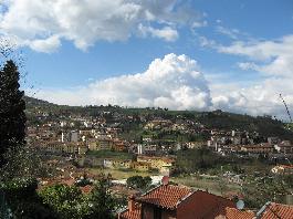 Beyond the built environment, the landscape quickly opens into vineyards, olive groves, and gently rolling hills that signal the beginning of classic Tuscan scenery. The contrast between the flat river valley and the rising countryside gives Rignano sull¢Arno a subtle spatial depth, where shifts in elevation reveal broader views over the surrounding land.