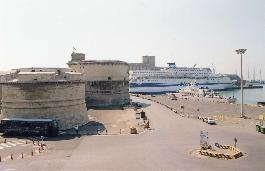 The harbor dominates the town¢s identity. Protected by long piers and infrastructure, it serves as a gateway between Italy and destinations across the Mediterranean. At its edge stands the Forte Michelangelo, a Renaissance fortress that anchors the port visually and historically, marking the long-standing strategic importance of this coastal position.
