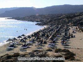 Elia is on of the most beautiful beaches in Mykonos. It is 8km from the center and rather cosmopolitan. The endless golden beach is her particular characteristic. Here you will come across to many of the celebrities that visit the island every year. Swim in the clear waters and enjoy all comforts provided by the good organization of the beach. If you feel like playing, visit the paradise of waterslides. Watermania is very close to the beach and covers a ground of 60sq.m. In the ultramodern facilities, you will have the time of your life.