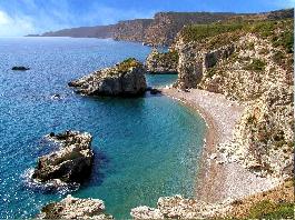 One of the best pebble beaches on the island. The last 50m down the slope are steps.