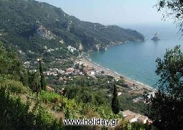 Agios Gordios is one of the most developed tourist settlements of southwestern Corfu. It is 16km from the city in a marvelous location. The endless vineyards of the region end in the dreamy beach of Agios Gordios and create a scenery of unique natural beauty. It is one of the most impressive beaches of the island with two gigantic rocks above, protecting it. The sea is crystal blue. The view is extraordinary especially from location "Aerostato" in the right end of the gulf.