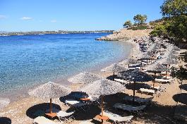 In the northwestern part of the island is the magnificent beach of Vrellos. There is a five-minute drive from Poseidon Square by bus, as there are bus services at regular intervals. Vrellos beach is one of the most beautiful and quiet of the island. Its characteristic is that it is not on the road but in order to reach and enjoy its crystal clear blue waters, you have to descend a few meters downhill or by foot. Vrellos beach is literally reminiscent of an oasis. Access by bus, sea taxi, your own means of transport or if you prefer the picturesque trolleys. It has café-bars, restaurants, umbrellas and sun loungers and water sports.