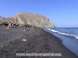 The beach of Perissa is one of the most popular beaches in Santorini. Black sand is its particular characteristic. It is a well-organised beach where you can do water sports. Here are the remains of the Byzantine church of Santa Irini that has given its name to the island of Santorini. There are a lot of hotels and rooms to let around the coast.