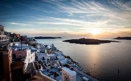 Like the sweet memory of the magnificent view to the volcano and the enchanting sunset. Unforgettable pictures that you won¢t find anywhere else. Especially during the dawn, atmosphere in Fira has a sacred glory. The lights of iridite paint horizon and the whole island glows under the pure sky.