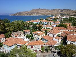 It is located in the northern part of Lesvos, 57 km from Mytilene, and serves as the seat of the municipality of the same name.