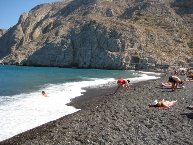 Kamari is one of the most popular resorts in Santorini. It is 10 km from Fira and distinguishes for its touristic infrastructure. Kamari¢s beach is one of the most famous beaches in the island. It has black pebbles, it is organised and stretches to Monolithos.