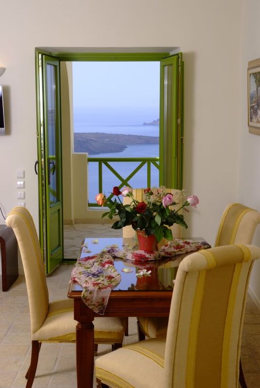A taste of sunny countryside our guest is invited to enjoy on the green sofa which promises an undisturbed relaxation and comfort. The beige armchairs and the yellow chairs give a pleasant odour in the atmosphere, while the lime tints sweeten the untamed waves which surround the island.