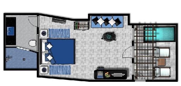 Suite (34 sq m) with outdoor heated Jacuzzi, embedded in its private balcony (11 sq m)