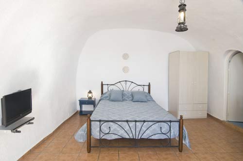 The Traditional studio is built according to the traditional island’s architecture and is located 80 meters away from the hotel’s main premises. It could accommodate comfortably 3 persons (a double and a single bed) and it provides you with a private veranda with view towards the Volcano and the Caldera gulf, a private bathroom, kitchen facilities, refrigerator, air-conditioning and high-tech amenities such as free high speed Wi-Fi, LCD flat-screen, satellite TV and radio and DVD-mp3 player.